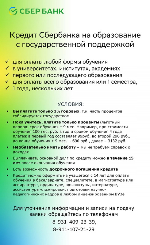 Сбербанк образовательный кредит с господдержкой
